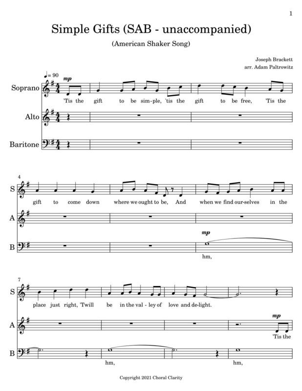 In addition to the traditional purposes of a round (great for sight-singing, learning how to sing independent parts, etc.), this round is designed to focus on consonants that are frequently mispronounced or omitted as well as ones that frequently sound the same, even though they shouldn’t.